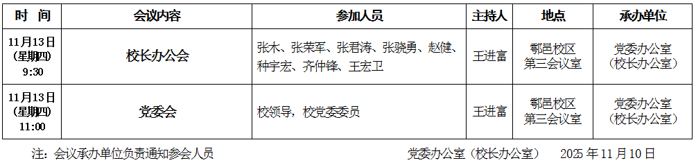 2025年11月10日至11月16日(第11周)会议安排