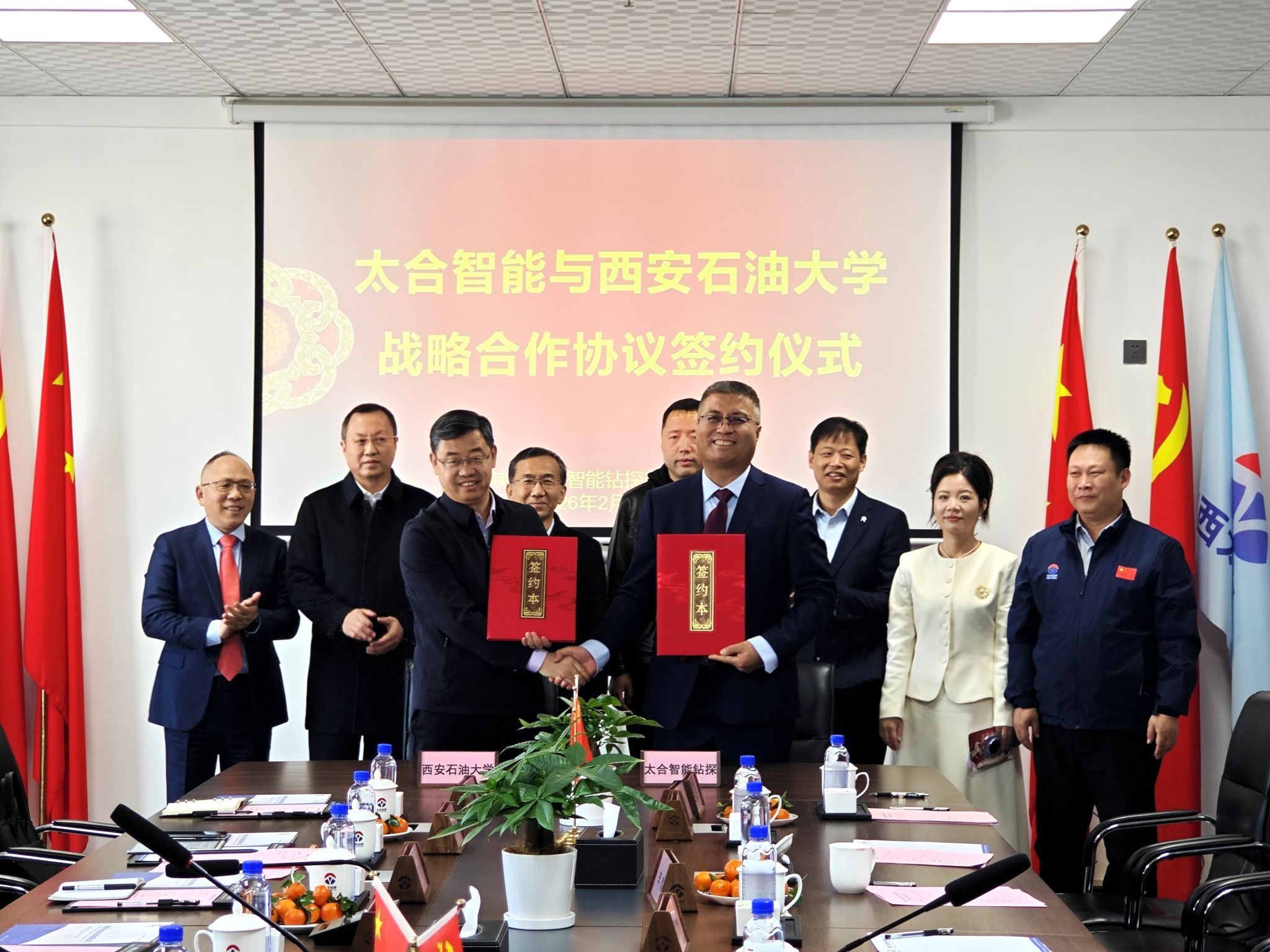 王进富、张木、张荣军参加我校与陕西太合智能钻探有限公司战略合作协议签署仪式